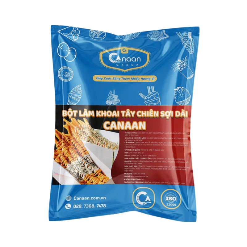 Với ưu điểm là Bột làm bánh trộn sẵn, dễ sử dụng, dễ bảo quản và dễ mở rộng quy mô, Bột làm khoai tây chiên sợi dài Canaan chính là lựa chọn lý tưởng cho những ai muốn bắt trend nhanh, bán dễ và tối ưu lợi nhuận.