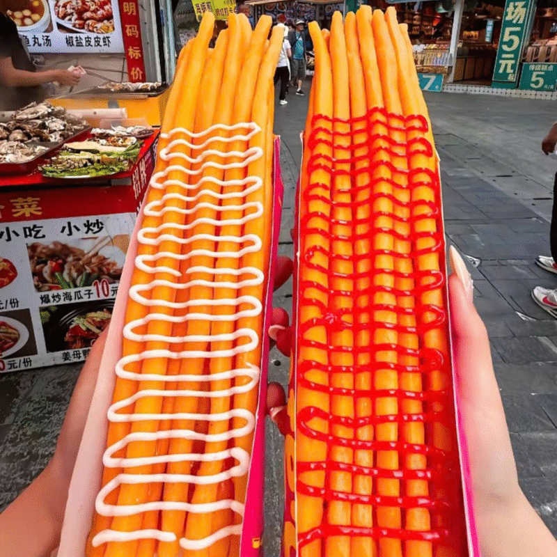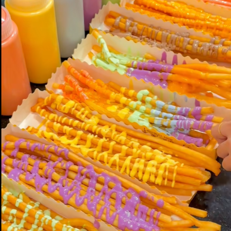 Khoai tây chiên sợi dài nhanh chóng trở thành món ăn “gây sốt” nhờ hình thức bắt mắt, dễ quay video, dễ lan truyền trên mạng xã hội. Chỉ cần một khay khoai vàng ươm, sợi dài đều, rưới sốt hấp dẫn là đã đủ thu hút khách hàng dừng chân mua ngay.