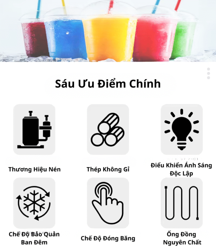 Sở hữu thiết kế hiện đại, công nghệ làm lạnh hiệu suất cao cùng dung tích hoạt động phù hợp, chiếc máy này đáp ứng hoàn hảo nhu cầu kinh doanh vừa và nhỏ. Nếu bạn đang tìm kiếm một thiết bị vận hành ổn định, tiết kiệm điện, an toàn và bền bỉ, hãy cùng khám phá chi tiết sản phẩm ngay dưới đây.