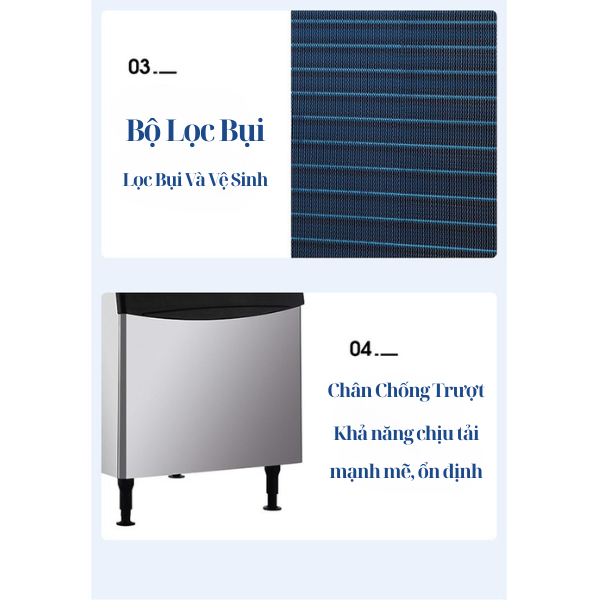 - Thùng chứa đá đi kèm: Model B-1000 (chứa 1000kg/1 tấn đá)