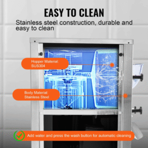 Thân máy được chế tạo hoàn toàn bằng inox chống gỉ, không chỉ đảm bảo độ bền mà còn tạo cảm giác sang trọng – sạch sẽ, vốn rất quan trọng đối với ngành thực phẩm. Đây là kiểu thiết kế thể hiện rõ sự đầu tư bài bản, phù hợp với bất kỳ mô hình kinh doanh F&B chuyên nghiệp nào.