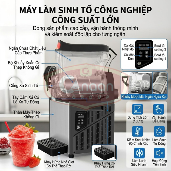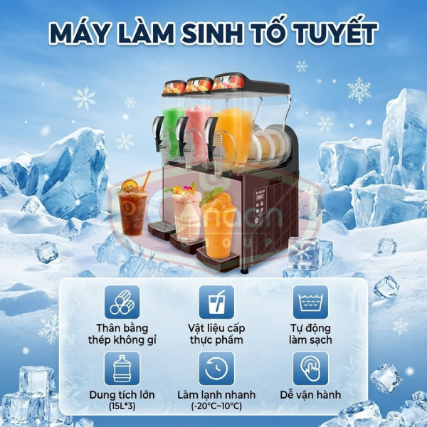 Với dung tích lên đến 15 lít, dòng máy này đặc biệt phù hợp cho các quán có lượng khách ổn định hoặc muốn mở rộng menu đồ uống đá tuyết.
